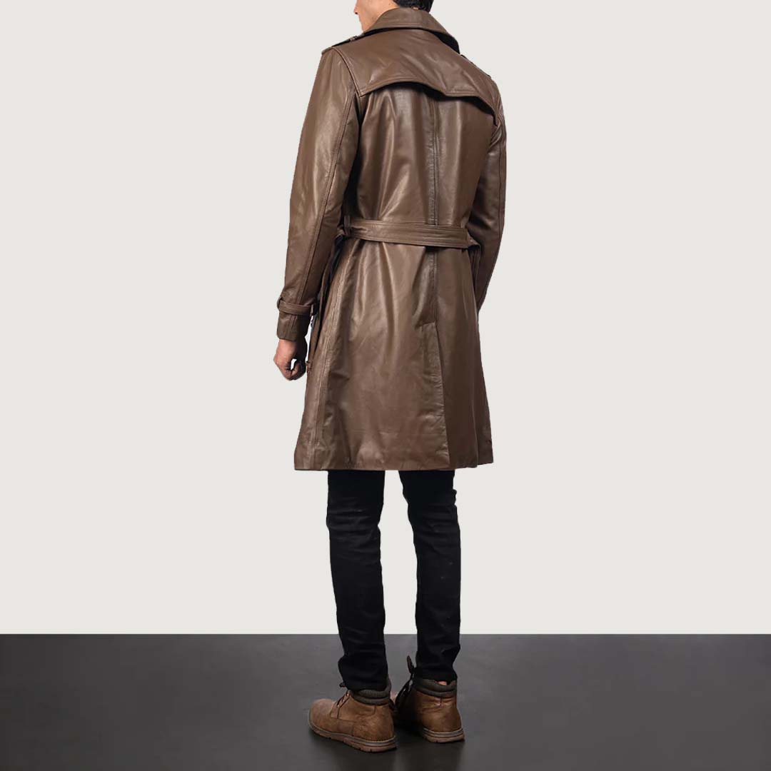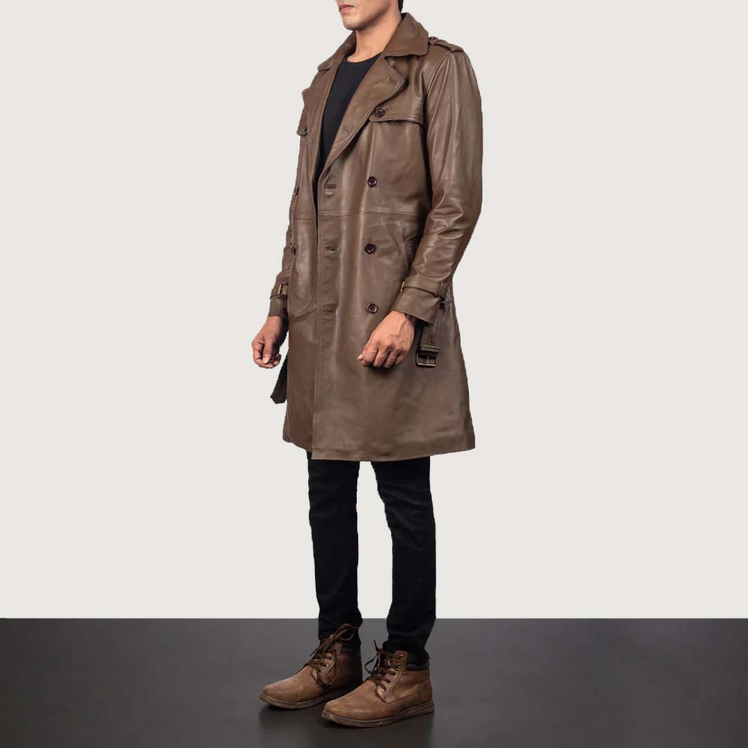 Brown Leather Duster Coat - Belted Coat