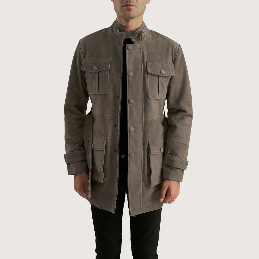 Collar: High-neck belted collar adds a sophisticated, structured touch.