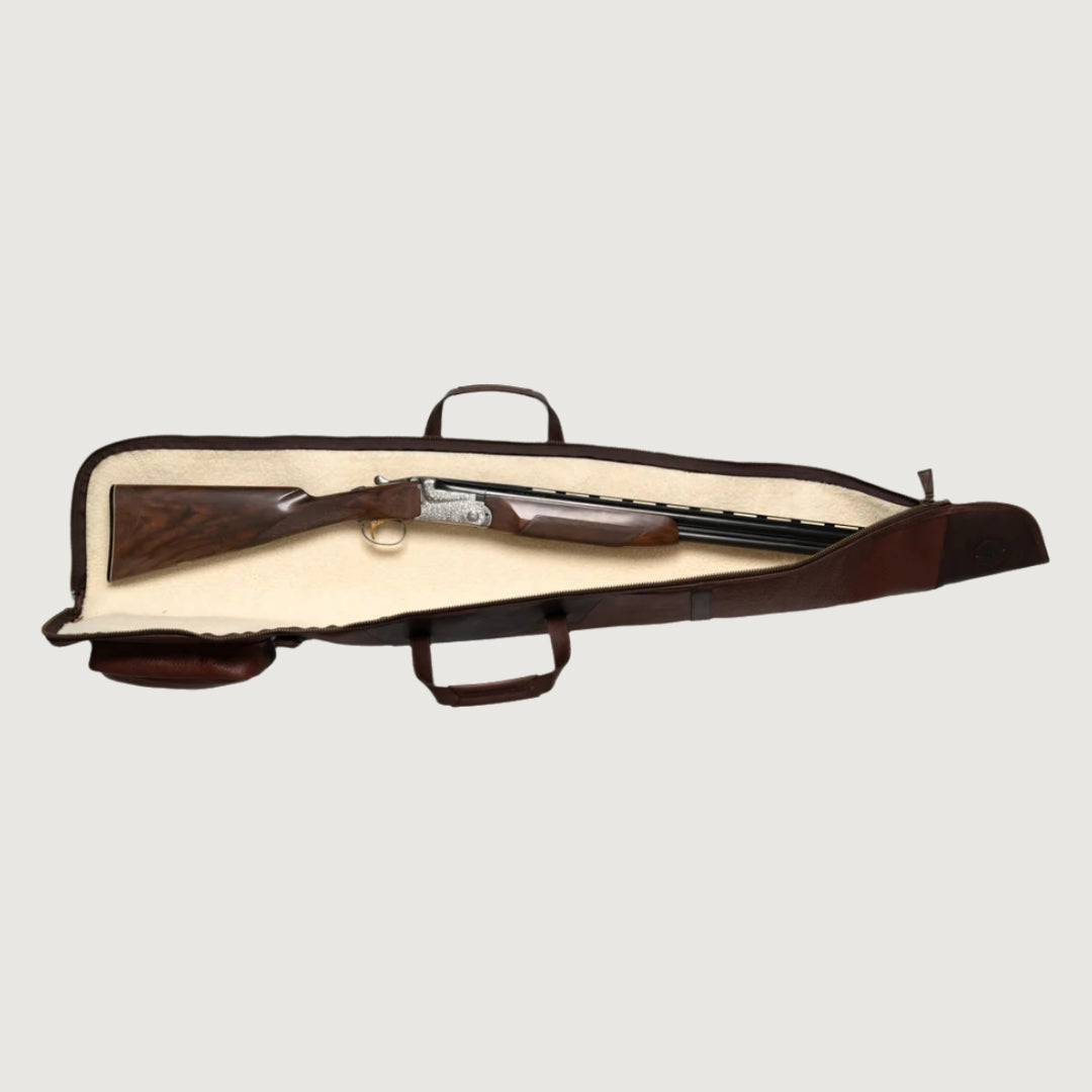 The Double-Wrapped Leather Shotgun Case combines rugged design with practical functionality. Crafted from durable vegetable-tanned, full-grain leather, it features a sherpa-lined interior for protection. With copper rivets, antique brass zippers, and an adjustable leather strap, this case is built to last, offering timeless style and reliable performance for every hunt.