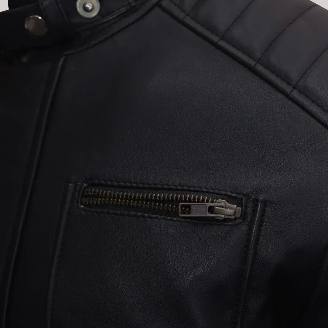 Classic Biker Design: Asymmetrical zipper, snap-down lapel collar, and zippered cuffs for timeless motorcycle style.