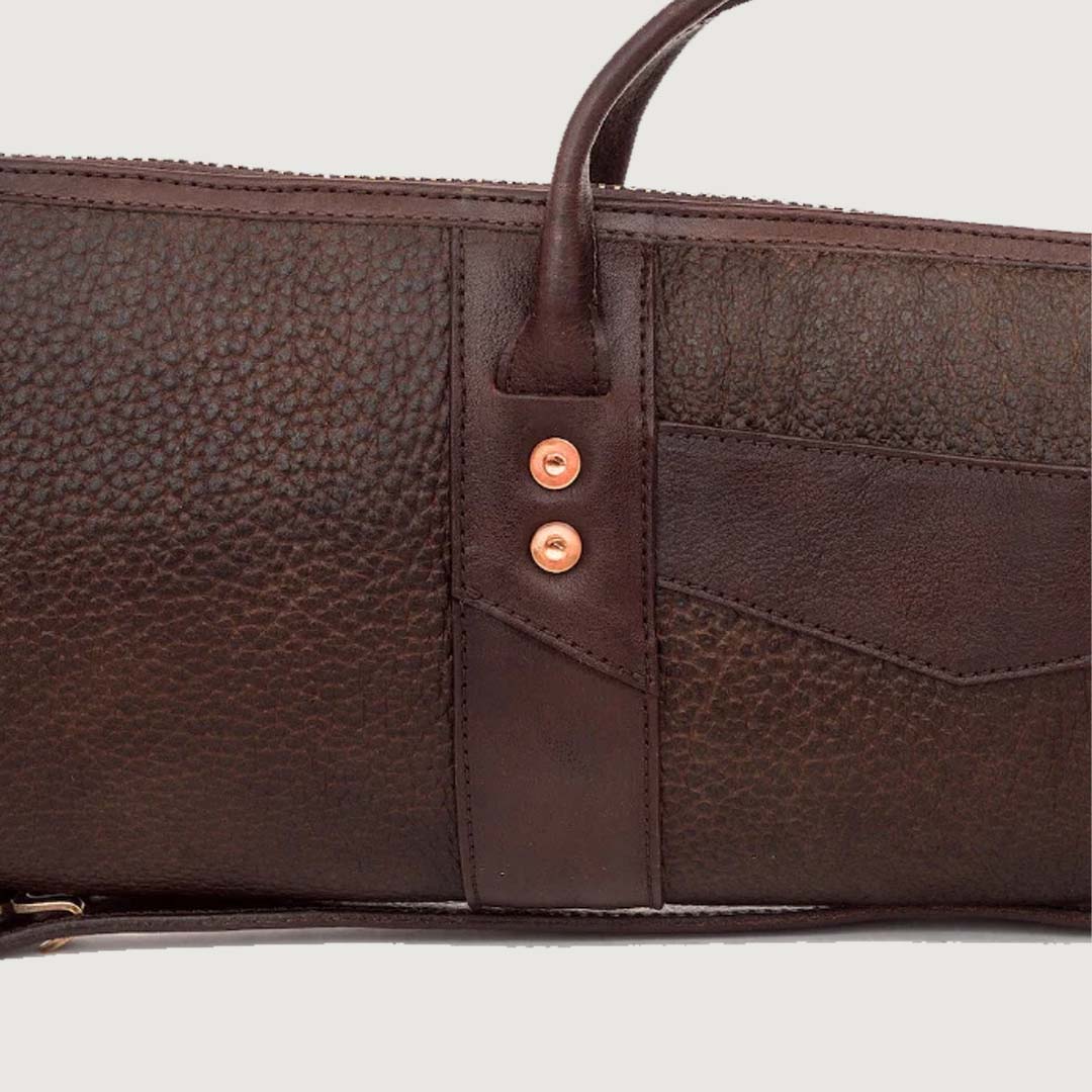 This Leather Express HandCrafted Leather Hunting Shotgun Case combines rugged durability and superior protection with full-grain US steerhide leather and acrylic shearling lining. It accommodates firearms up to 51" in length, with antique brass hardware and a YKK brass zipper for secure closure. Built to withstand the elements, this case is ideal for the discerning shooter who values quality craftsmanship.