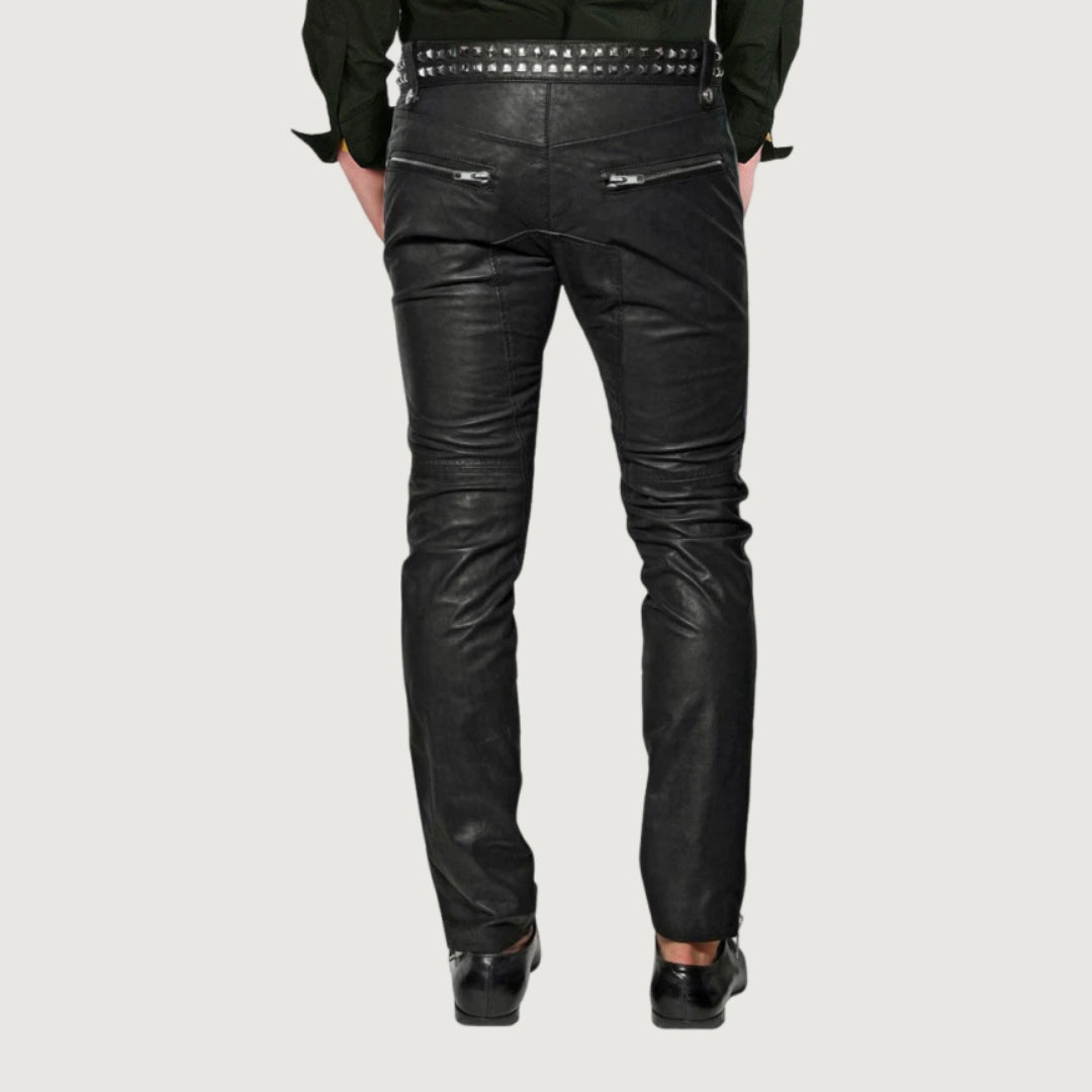 Elevate your style with these premium men's leather pants, crafted from 100% genuine lambskin leather. Designed for comfort and sophistication, these pants are fully lined and feature superior craftsmanship with fine stitching. Perfect for pairing with tees, shirts, jackets, or blazers, they make an excellent addition to any wardrobe.