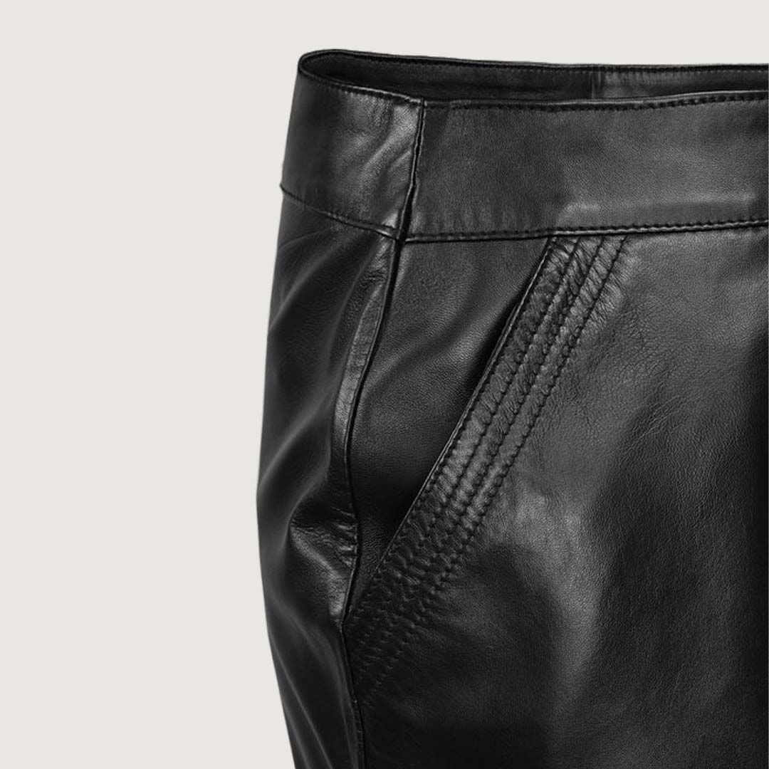 Iconic Design: Inspired by Sandra Bullock’s black leather skirt from The Heat Berlin premiere.