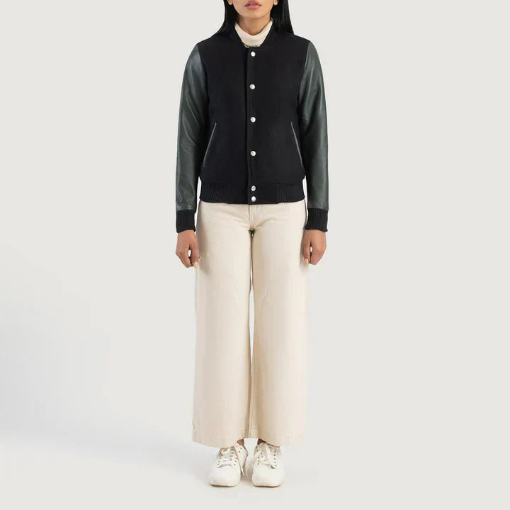 Savant Green & Black Hybrid Varsity Jacket