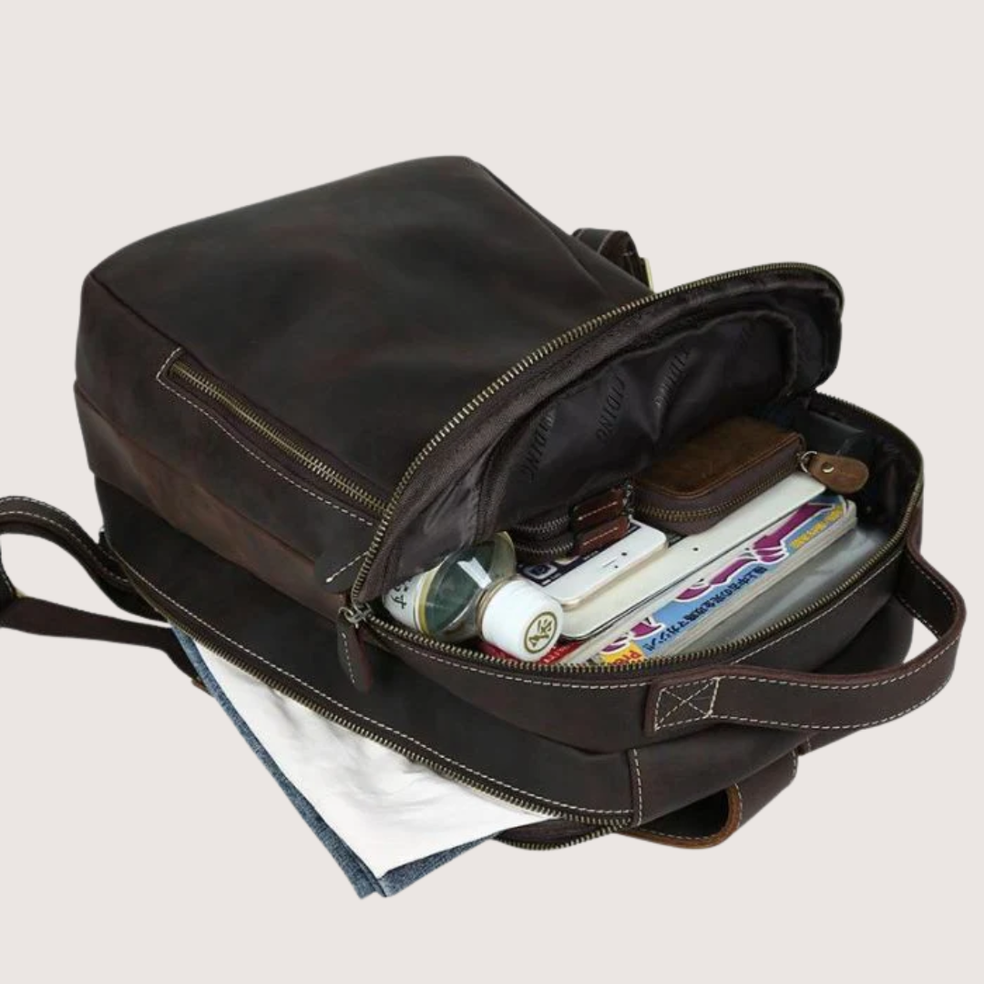 Carrying: Comfortable leather grab handle and adjustable, ergonomic shoulder straps.