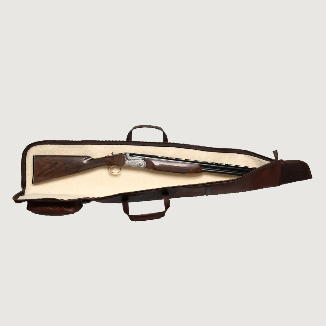 The Two-Toned Thick Leather Rifle Case combines rugged functionality with luxury for the discerning outdoorsman. It is made from vegetable-tanned full-grain leather and features a sherpa-lined interior, copper rivets, antique brass hardware, and an adjustable leather strap. Durable and elegant, it's the ultimate statement piece for those who demand quality and style.