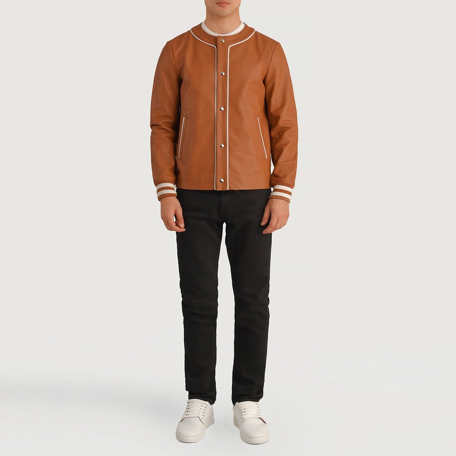 Sporty Baseball Design: Collarless silhouette with stripe detailing for a classic varsity aesthetic.